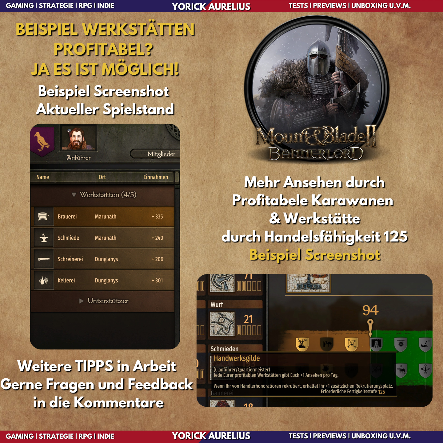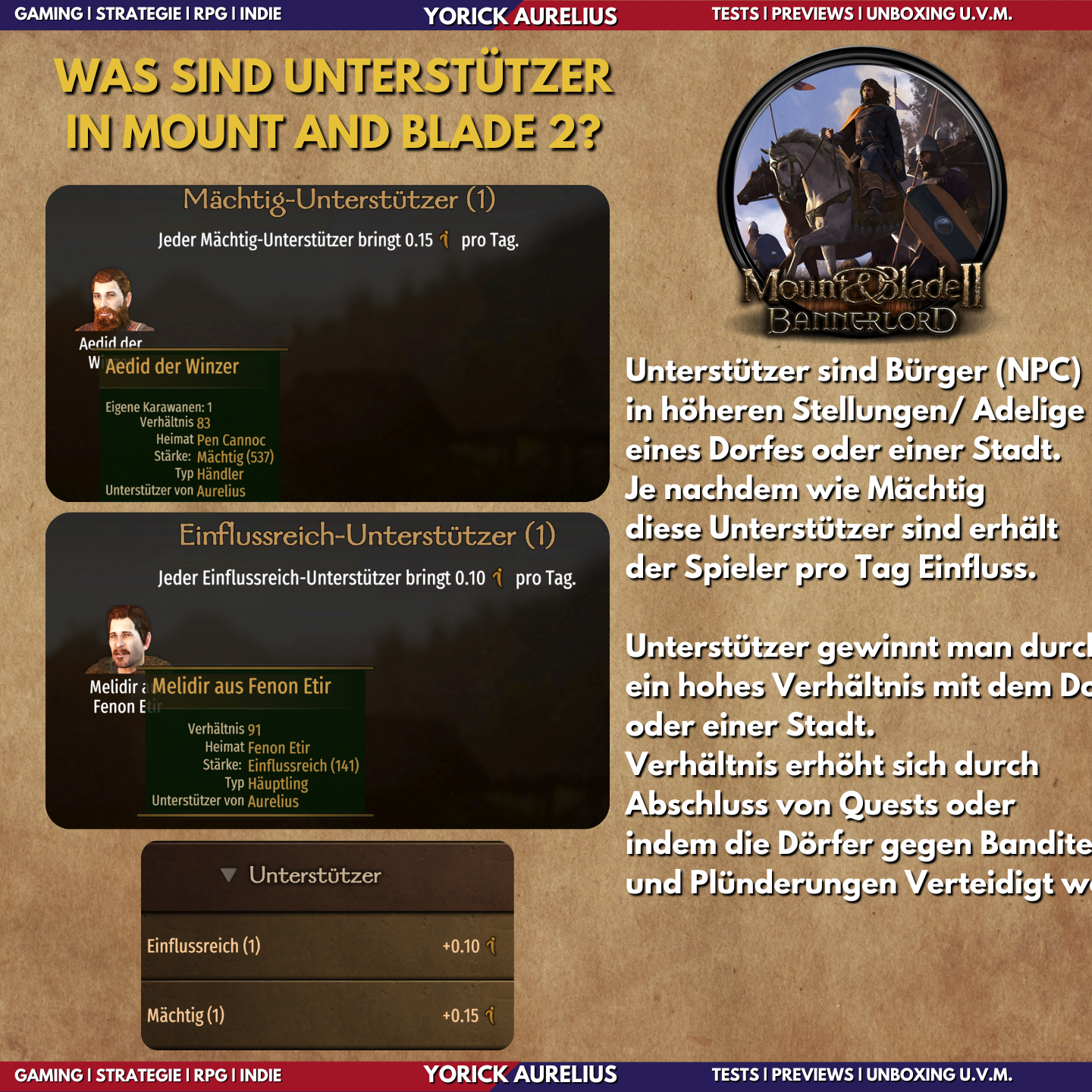 Klingt einfach? Ist es auch, ich zeige euch in meiner umfangreichen Tipps und Guide Videoreihe zu Mount and Blade 2 Bannerlord relevante Tipps und Tricks und bringe euch schnell vom einfachen Bauern und Lumpenpack zum Herrscher mit eigenen Burgen und Städten.